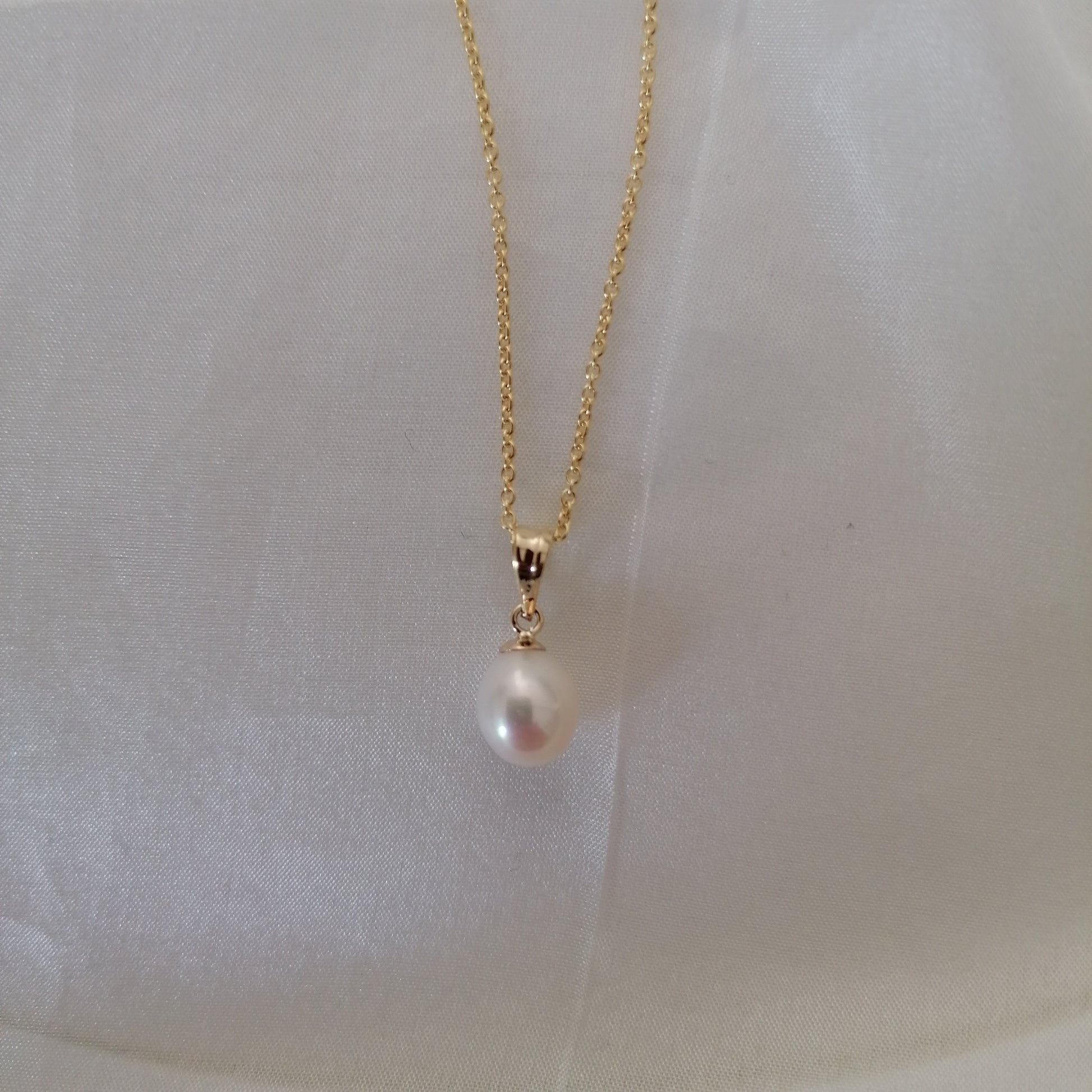 1,1mm Ankerkette in 375er Gold mit echtem Perlenanhänger oval und Schlaufe in 375er Gold